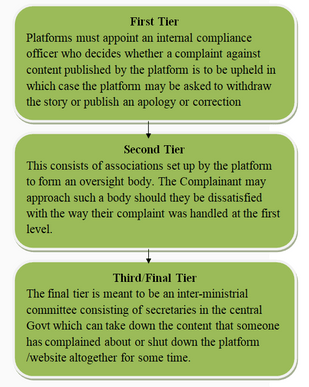 - The rules also call for a three-tier regulation mechanism for OTT players as under